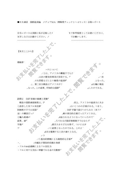 日大通信 国際経済論【0737】メディアMA(理解度チェック1~4セット)合格レポート