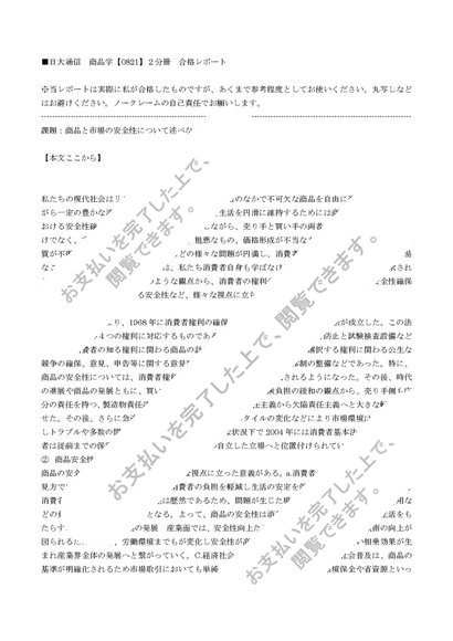 日大通信 商品学【0821】2分冊 合格レポート