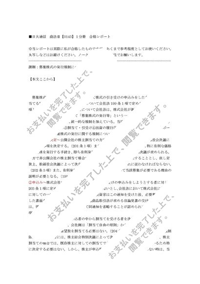 日大通信 商法Ⅱ【0143】1分冊 合格レポート