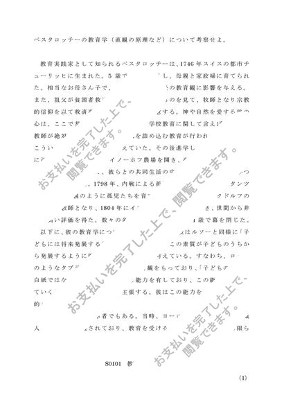 【2023年度対応】 S0101教育原論 第1設題 レポート A評価