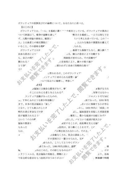ボランティアの役割及びその倫理について、あなたなりに述べよ