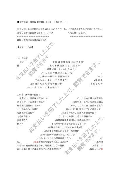 日大通信 租税論【0744】2分冊 合格レポート