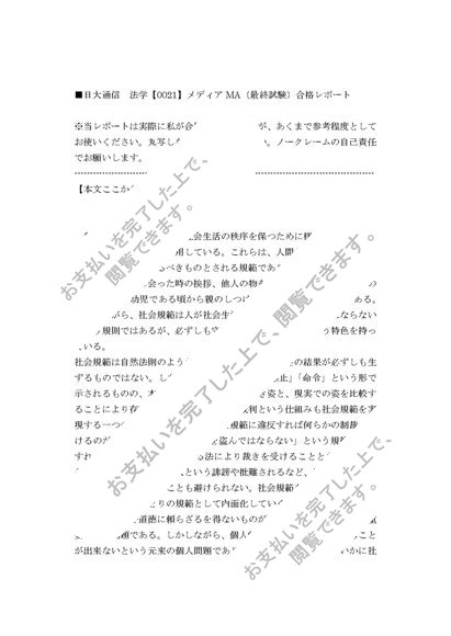 日大通信 法学【0021】メディアMA(最終試験)合格レポート