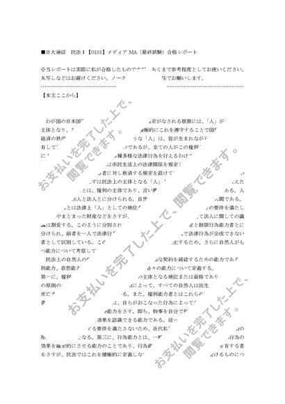 日大通信 民法Ⅰ【0131】メディアMA(最終試験) 合格レポート