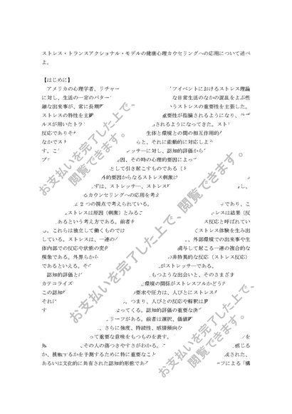 ストレス・トランスアクショナル・モデルの健康心理カウセリングへの応用について述べよ