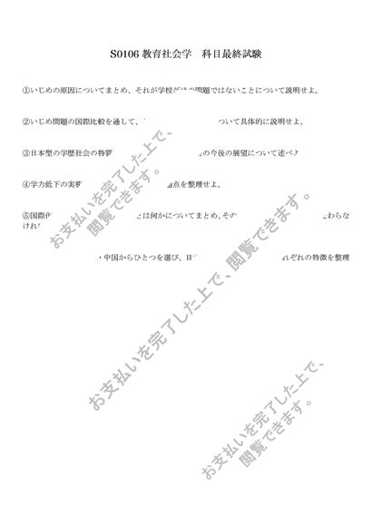 【2023年度対応】 S0106教育社会学 佛大科目最終試験対策 6設題&解答例 97点