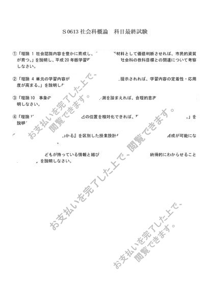 【2023年度対応】 S0613社会科概論 佛大科目最終試験対策 6設題&解答例 95点合格済み