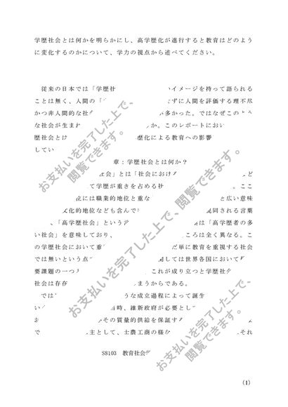 佛教大学通信教育学部 S8103 教育社会学1 第1設題(A判定合格済)