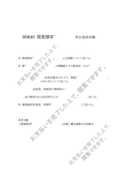 佛教大学 S0840視覚障害教育総論 試験6題x解答
