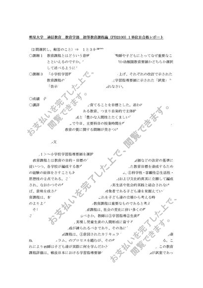 初等教育課程論(PB2100)1単位目 合格レポート