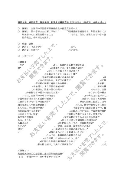 初等生活科教育法 PB2150 1単位目 合格レポート