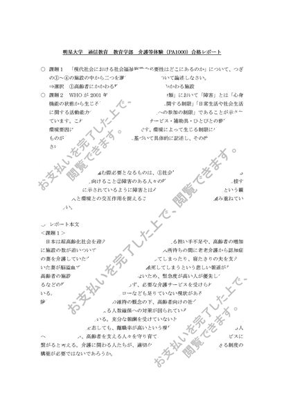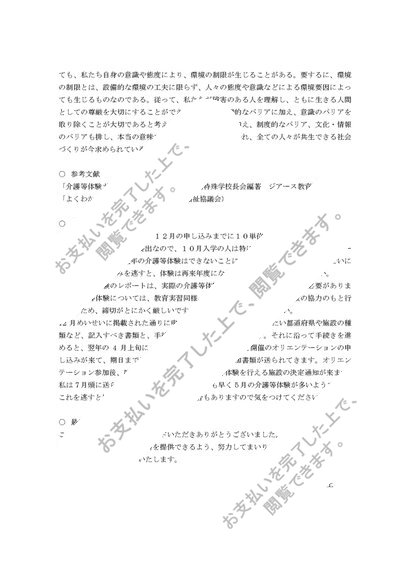 介護等体験 PA1000 1単位目 合格レポート
