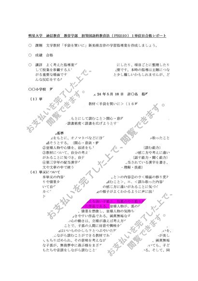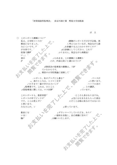 初等国語科教育法 PB2110 1単位目 合格レポート