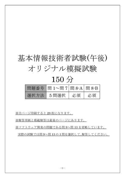 基本情報技術者試験(午後)オリジナル模擬 無料!