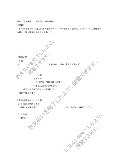 憲法答案練習 外国人参政権