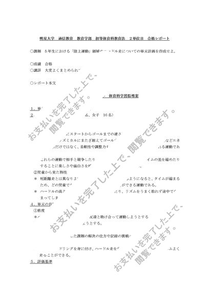 初等体育科教育法 PB3060 2単位目 合格レポート