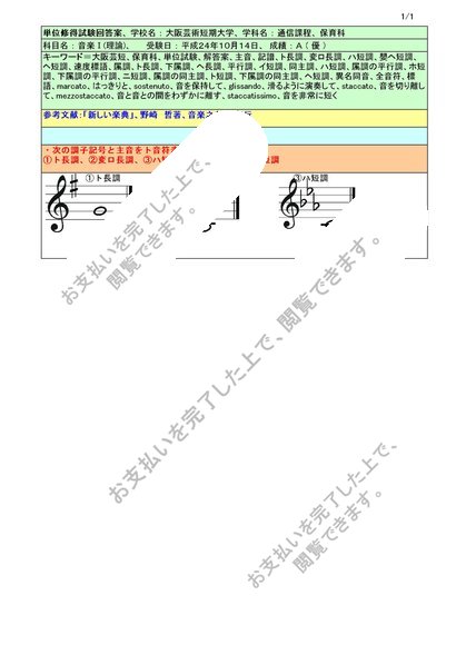 【音楽1(理論)】大阪芸術短大、NJ11~NJ18対応、H24年10月試験、8問分解答案フルセット、評価【A優】