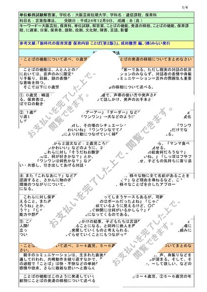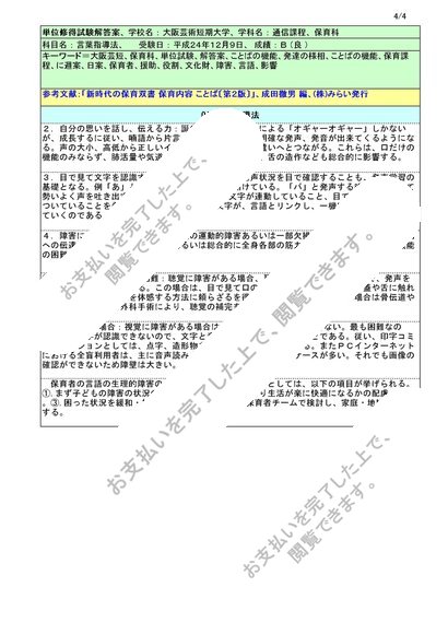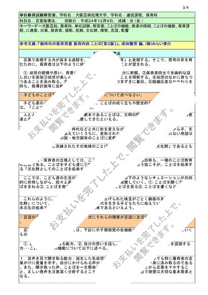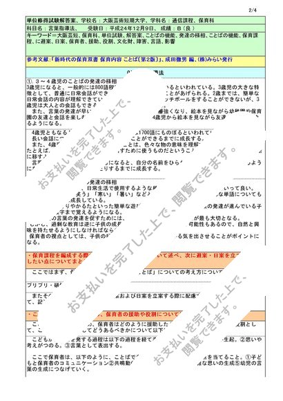 【言葉指導法】大阪芸術短大、NJ13~NJ18対応、全学生対応、H24年12月試験、6問分解答案、評価【B良】