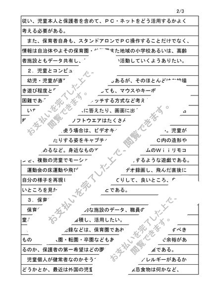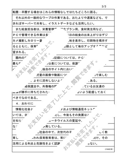 基礎情報学:大阪芸短リポート評価【A優】コンピュータおよび情報通信ネットワークを使用した保育教育について、あなたのアイディアを述べなさい。NJ06~14対応