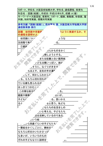 図画:大阪芸短リポート評価【A優】幼児画や児童画は一般的に、どのように発達するか、その過程を説明せよ。NJ06~14対応