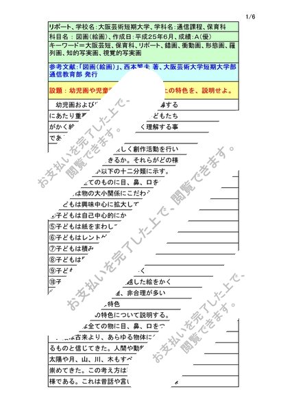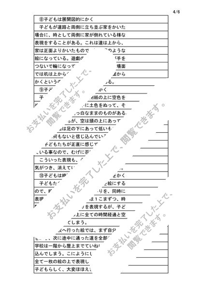 図画:大阪芸短リポート評価【A優】幼児画や児童画に見られる表現上の特色を、説明せよ。NJ06~14対応