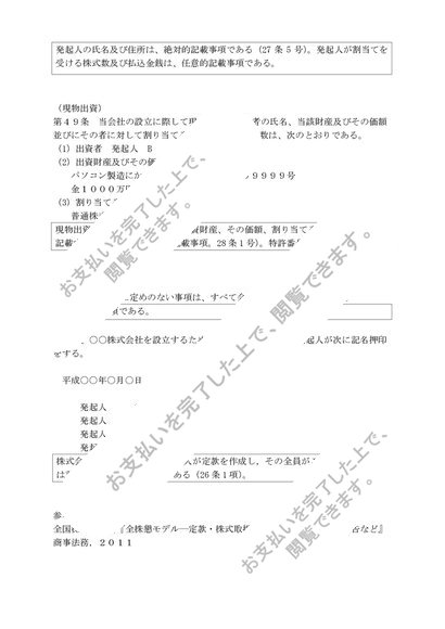 定款 記載例