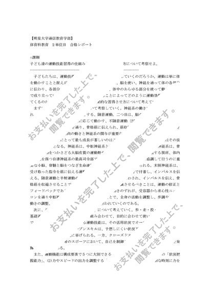 【体育科教育】 2単位目 合格レポート 明星大学通信