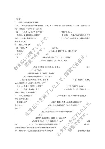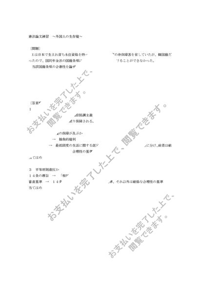 憲法論文練習 外国人の生存権