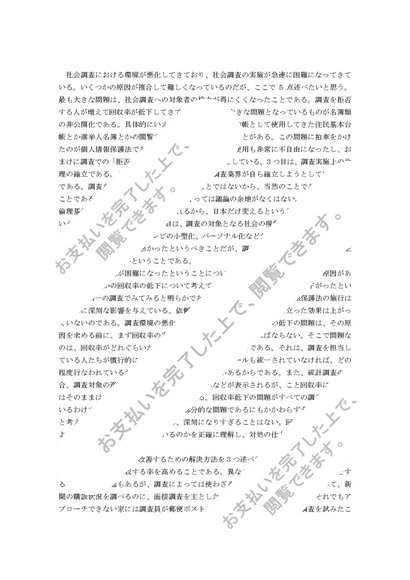 社会調査における環境の変化についてどのような問題点があるのかをその解決方法も含めて述べよ。(A判定・2043文字)