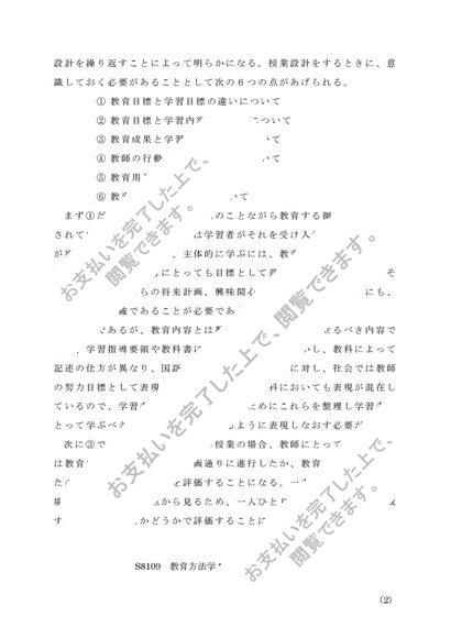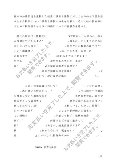 佛教大学通信教育学部 S8109 教育方法学1(中・高) 第1設題