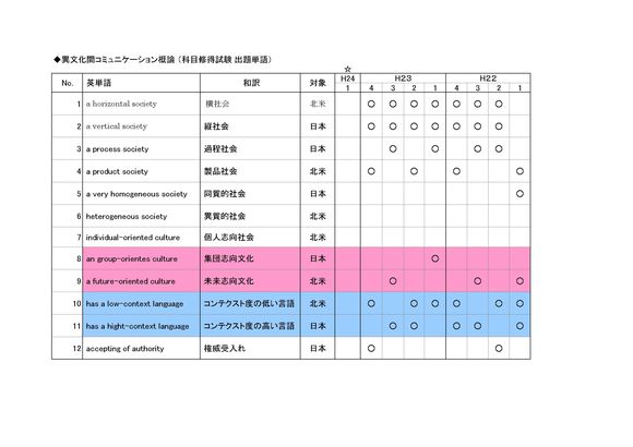 異文化間コミュニケーション概論 カモシュー出題 単語分析表