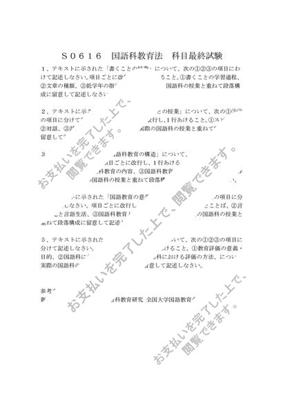 S0616 国語科教育法 科目最終試験 新問題対応版 5問 2015年対応