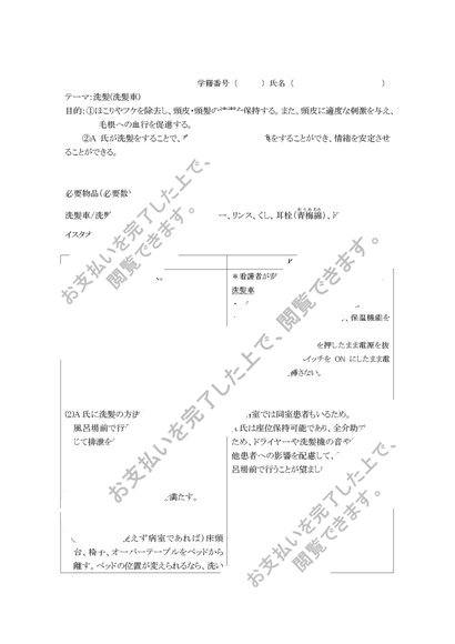 下肢骨折、座位可能な認知症患者の 洗髪車を用いての洗髪(技術用紙・根拠)