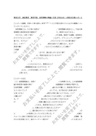 幼児理解の理論と方法 PB3110 1単位目 合格レポート