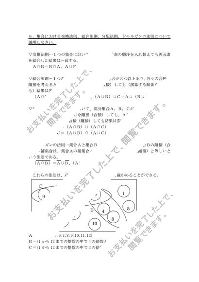 佛教大学 S0611数学概論 試験9題x解答