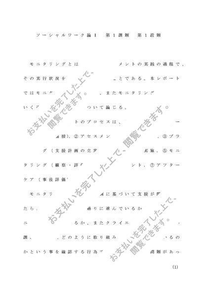 ソーシャルワーク論Ⅰ 第1課題(モニタリングの重要性を述べ、モニタリングを進めていく場合の留意点を述べなさい)
