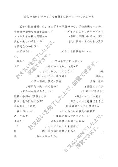 学校教育職入門 第一設題「現代の教師に求められる資質とは何かについてまとめなさい。」最終版