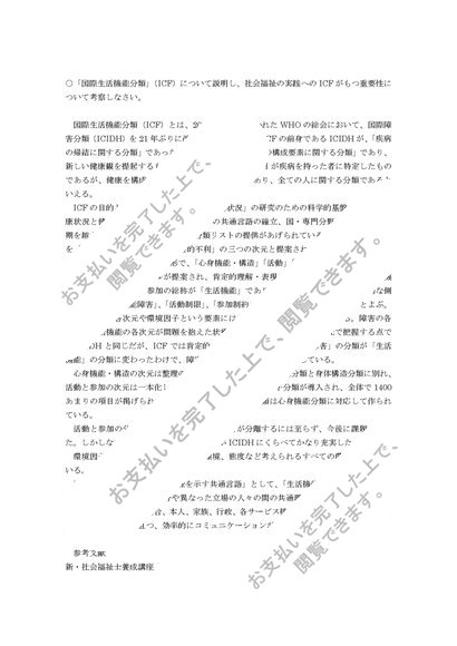 「国際生活機能分類」(ICF)について説明し、社会福祉の実践へのICFがもつ重要性について考察しなさい。