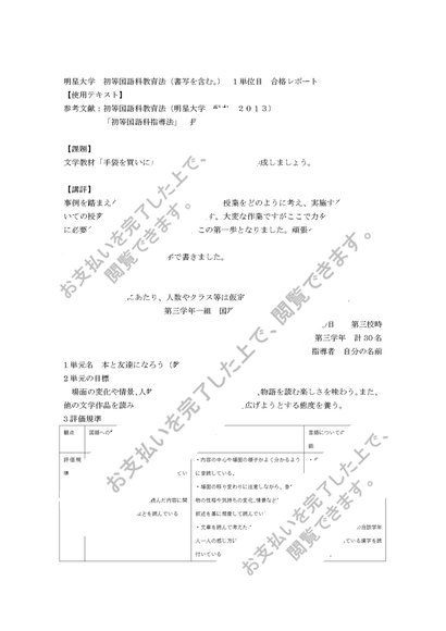 明星大学 初等国語科教育法 2単位目 合格レポート 2013