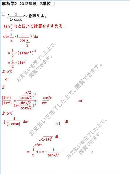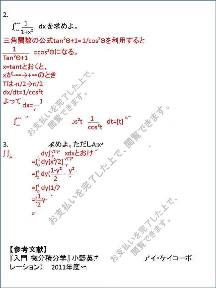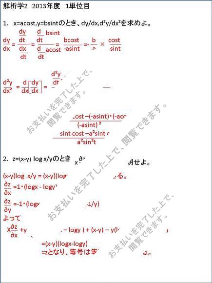 【2013】【明星大学】【解析学2】合格レポート(1.2単位目)※2015年度も同一課題