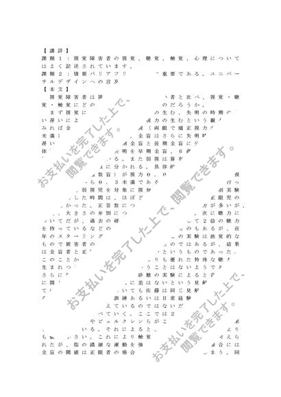 【2012】【明星大学】【視覚障害者の心理・生理・病理】合格レポート(1単位目)※2015年度も同一課題