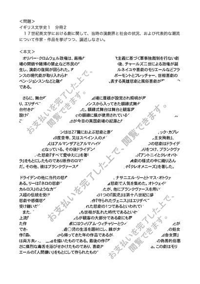 【日大通信】イギリス文学史1 分冊2【A判定合格レポート】