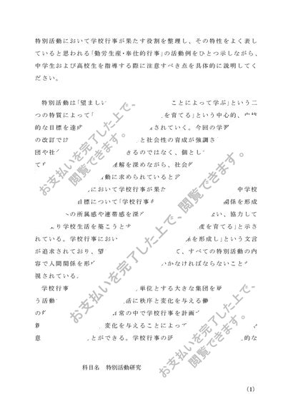特別活動研究(中・高) 第1設題 合格済
