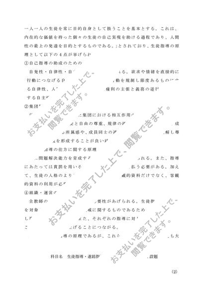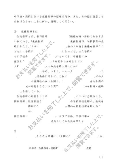 生徒指導・進路指導の研究(中・高) 第1設題 合格済