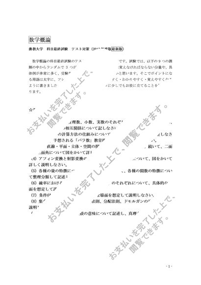 数学概論 科目最終試験対策全9題(2013年5月以降)(by立命館大卒)