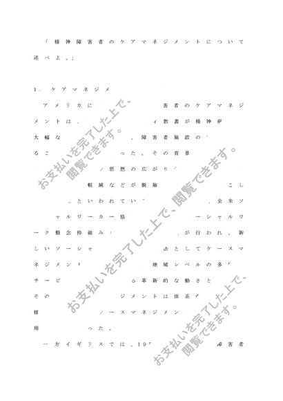 精神援助技術各論 精神障害者のケアマネジメントについて述べよ