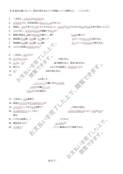 【佛教大学】経済学概論 科目最終試験 解答例<全6パターン対応>