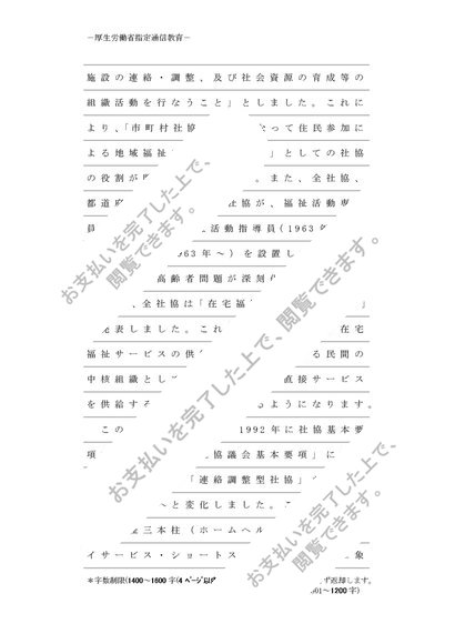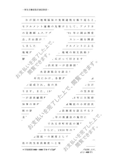 地域福祉の理論と方法①「地域福祉における主要な人物と業績等を織り交ぜながら「地域福祉の変遷」について考察しなさい。」(40点)