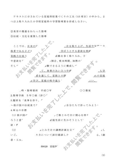 【2023年度】佛大 S0620家庭科教育法 レポートA評価