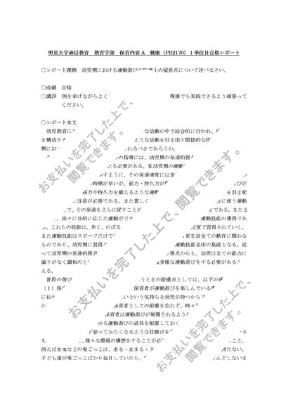 保育内容A 健康 PB2170 1単位目 合格レポート